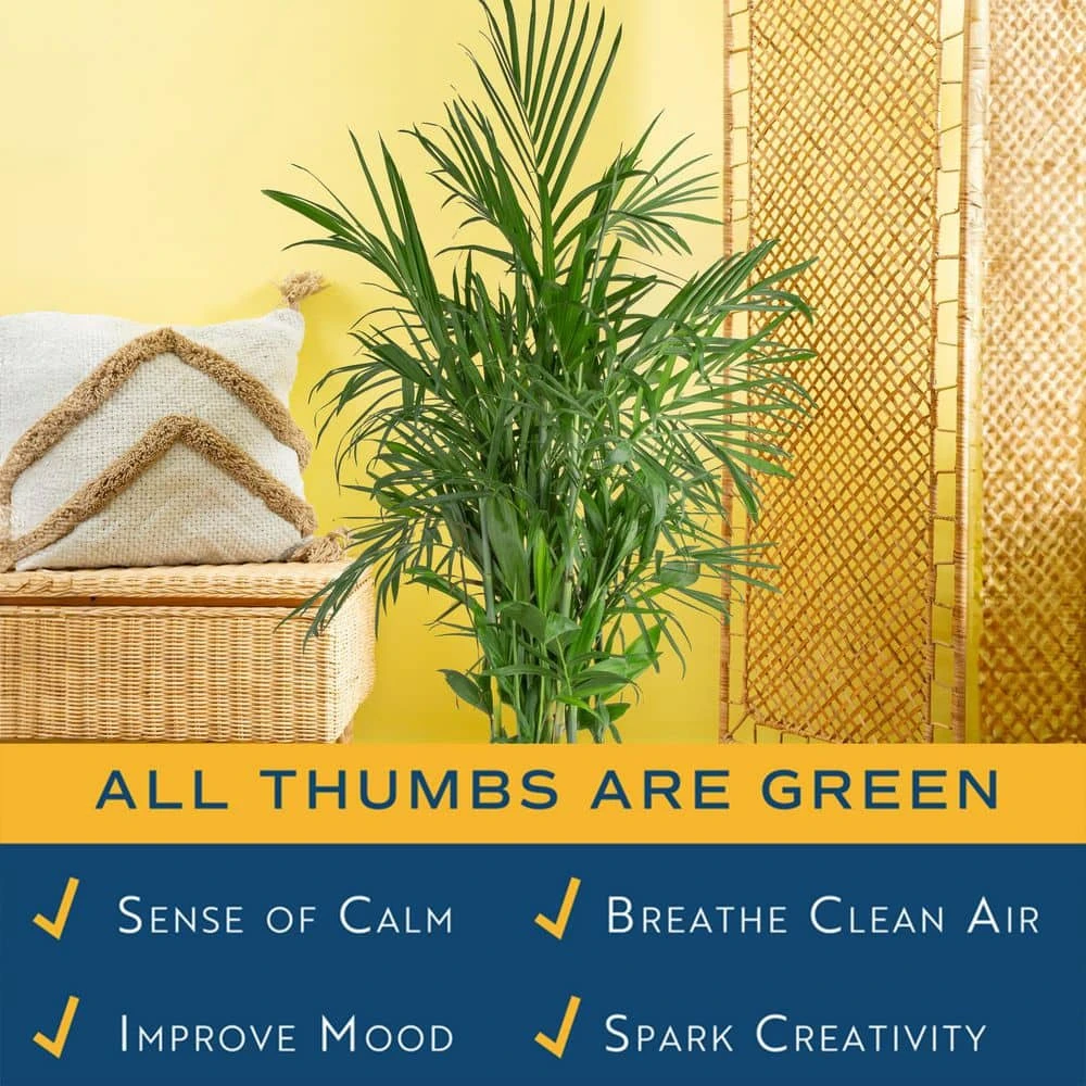 Think of Bamboo Palm as your passport to a world of greenery, style, and beautiful home decor. Also known as the Parlor Palm and Reed Palm, this versatile beauty isn’t just a plant; it’s a statement piece waiting to adorn your space. Its lush, elegant fronds atop bamboo-like trunks bring life to any room or office. Bamboo Palm is a low-light superhero tolerant of lower light conditions, making it the ideal choice for homes and offices alike. Enliven dim corners with its vibrant green presence. Fresh from our family-run farm to your front door, Bamboo Palm arrives fresh, vibrant, and bursting with life. Experience the joy of unboxing a piece of nature that’s been nurtured just for you. We care about your plant as much as you do. That’s why we include a complimentary heat pack, ensuring your Bamboo Palm arrives in perfect condition, even in chilly weather.