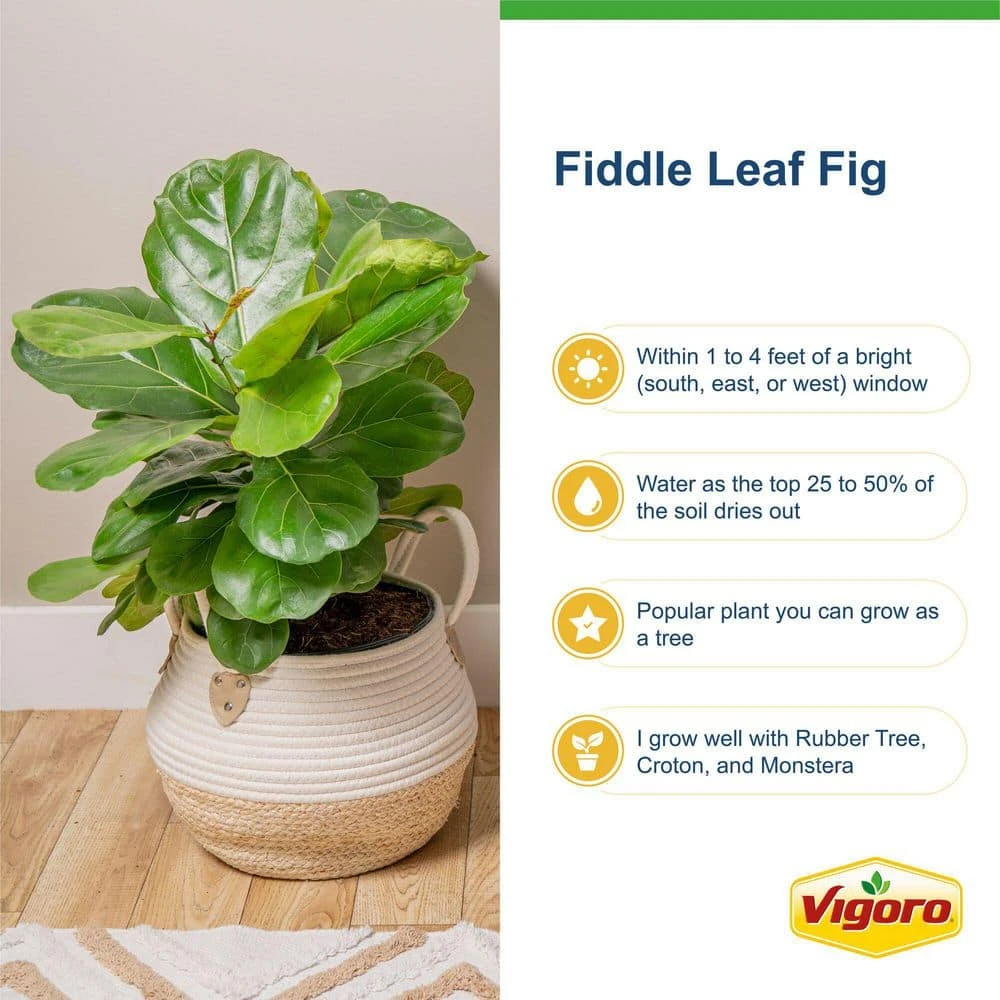 Enhance your living area with this Fiddle Leaf Ficus plant! This eye-catching plant has large, dark green leaves that add a rich tropical look to a bedroom, living room, or sunroom. Not only are Fiddle Leaf Figs striking and hearty, they help purify the air by removing unhealthy organic compounds. Research also shows that adding plants to your home also may help you feel happier and calmer. Comes in a 10 in. white planter.