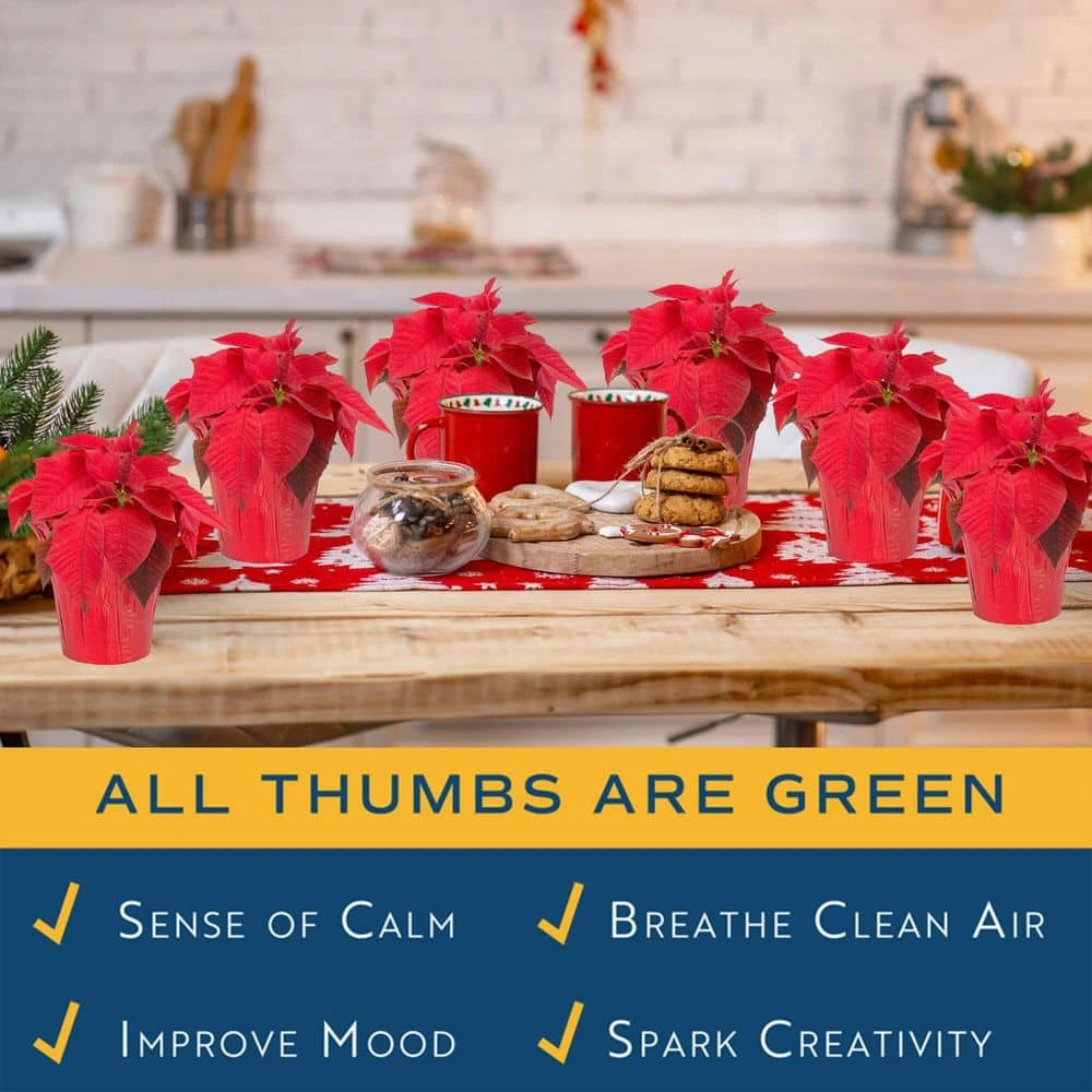 Let the Holiday spirit grow throughout the year with Christmas Poinsettias from Costa Farms. Poinsettias have been the staple plant for Christmas since the early 1800s. Great as a gift or for your own home, Poinsettias feature lance like leaves that work to purify the air all year long. A seasonal centerpiece that’s ideal for smaller spaces, the Poinsettia is great for decorating. Poinsettia thrives on sunlight and will do well in a sunny window. Water when the top couple inches of the soil are dry. If the container does not have holes, use approximately one half cup of water, adjust as needed for your environment. Do not let the Poinsettia sit in water or overly soggy soil. The height at shipping is approximately 6 inches tall, measured from the bottom of the pot to the top of the plant. The Poinsettia ships in a festive, 4-inch diameter holiday wrap. The Poinsettia is a slow to moderate grower depending on its environment and is hardy in USDA Zone 10. Give it a boost during the warm months of Spring and Summer with a general-purpose fertilizer that is formulated for house plants. When the plant out grows the current container, it is time to repot. Plants are living things; each one is slightly different, so the plant you receive may vary from the photo. Costa Farms plants are not intended for human or animal consumption. Keep out of reach of children and pets. We’re unable to ship this item to: AK, AZ, CA, GU, HI.