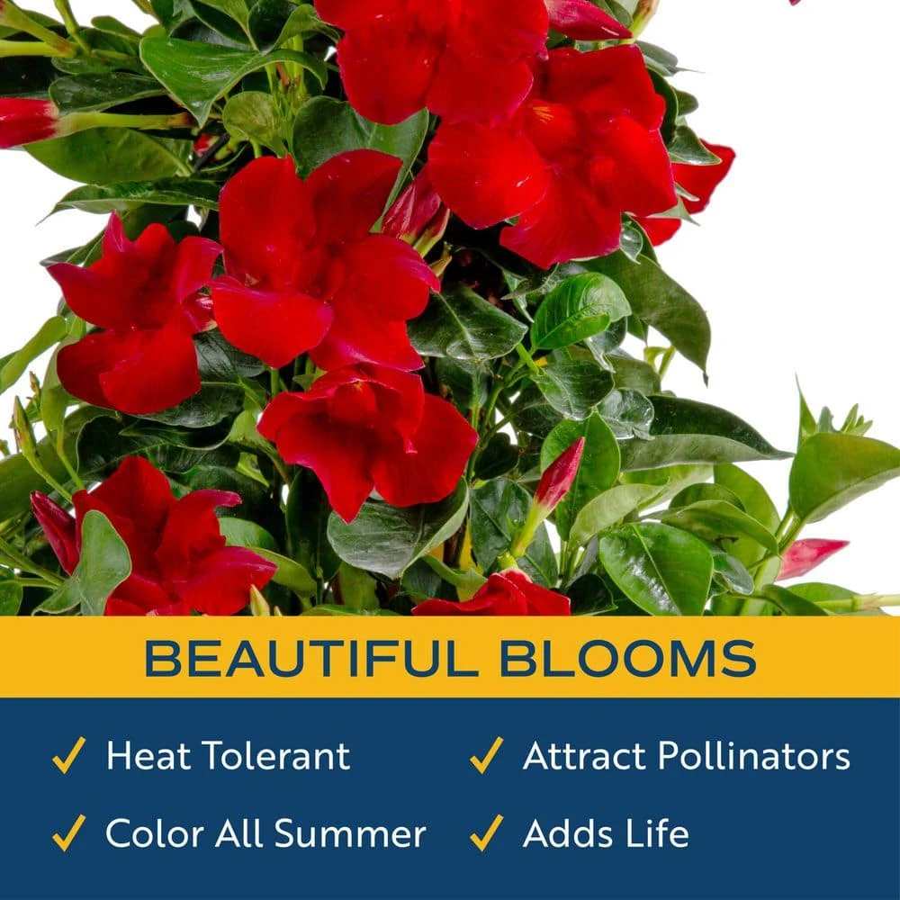 Make a dramatic statement in landscapes and container gardens with mandevillas that are bold and showy. Be prepared to have nonstop supply of large, trumpet shaped blooms. It flowers almost constantly so you may grow it as a flowering vine by itself or in combination with other flowers and foliage in container gardens.