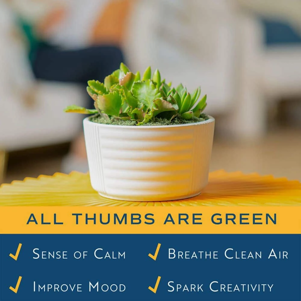 Enhance your home, office or patio space with this cacti and succulent garden. It only needs light watering for low maintenance. Great for tabletops or low plant stands, this full sun plant’s fleshy leaves create decorative charm in your space.