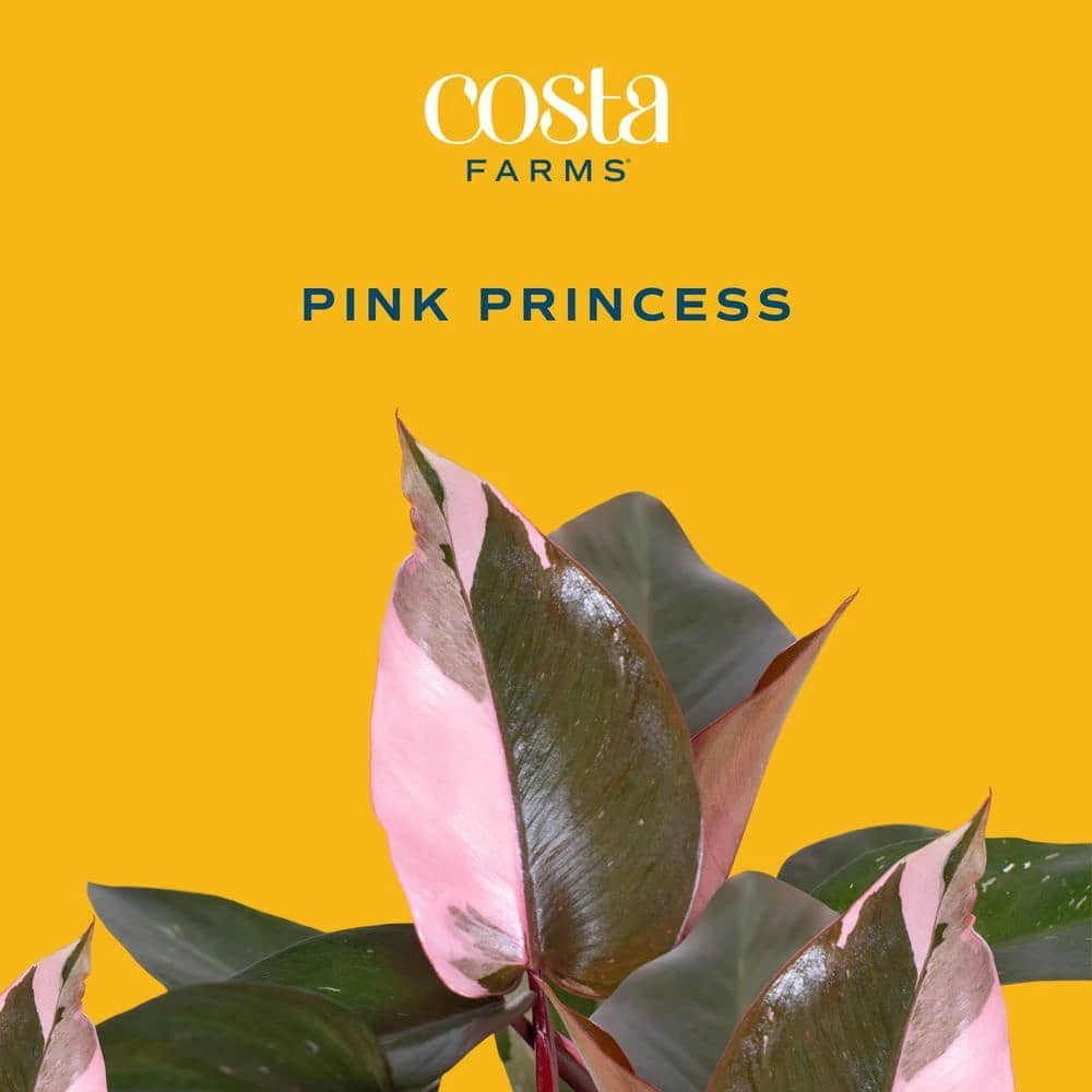 Enjoy the beauty of Costa Farms Philodendron Pink Princess, which features, green foliage and is fantastic for tabletops. Not only are Philodendrons striking, they help purify the air by removing unhealthy organic compounds. Grow Philodendron Pink Princess in bright, indirect sunlight. When shipped, it’s about 14 in. tall, measured from the bottom of the pot to the top of the plant. This item features our unique self-watering planter. The Wick & Grow self-watering system is based on a specially designed blue-and-white Waterwick (it looks like a string) that serves like a straw for your plant. As your plant roots drink water from the potting soil, the Waterwick draws that same amount of moisture up from a water reservoir below the pot. Philodendron Pink Princess is generally a grower, depending on environment and care provided. Boost growth in Spring and Summer with a fertilizer labeled for potted plants following the product’s instructions. Hardy outdoors in USDA Zones 10-12. Exposure to the sap of this plant may cause discomfort to individuals with a sensitivity to it upon contact. Grown for ornamental purposes and not intended for human or animal consumption.