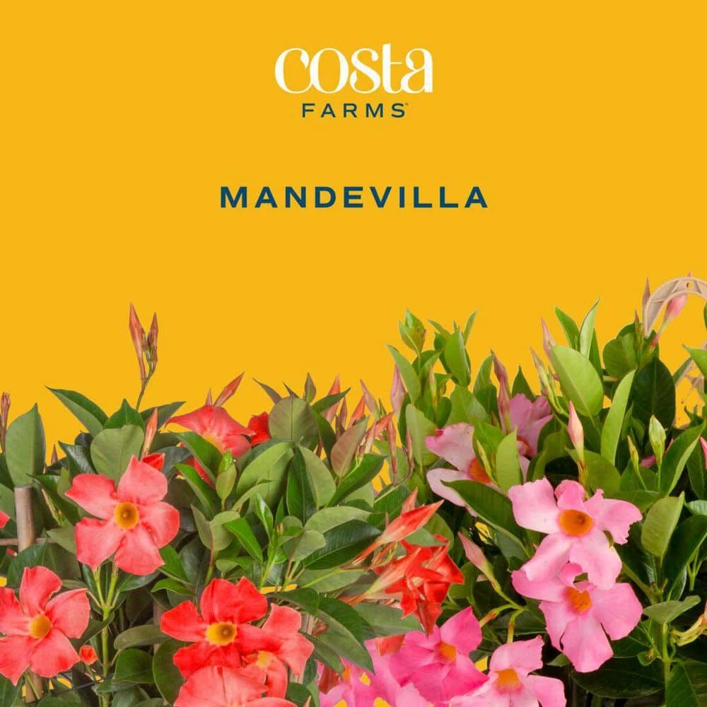 Make a dramatic statement in landscapes and container gardens with mandevillas that are bold and showy. Be prepared to have nonstop supply of large, trumpet shaped blooms. It flowers almost constantly so you may grow it as a flowering vine by itself or in combination with other flowers and foliage in container gardens.