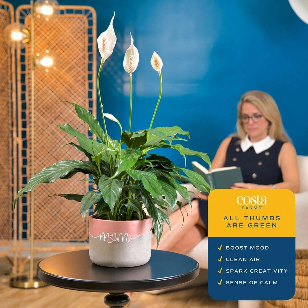 Enjoy white flowers atop dark green foliage with Spathiphyllum more commonly known as the Peace Lily. Spathiphyllum looks great with any interior decor. A houseplant classic, this is a favorite plant for homeowners looking for an easy to grow plant. The plant is native to the South American jungles so moist, humid conditions inside your home are best. Easy to grow plant with a big personality, Peace Lily is ideal houseplant for any home, apartment, or office. Peace Lily also makes a great housewarming gift. Everyone loves plants, especially ones that are so low maintenance! Because peace lily is one of the most efficient houseplants at filtering indoor pollutants from the air, it’s a great pick for bedrooms.
